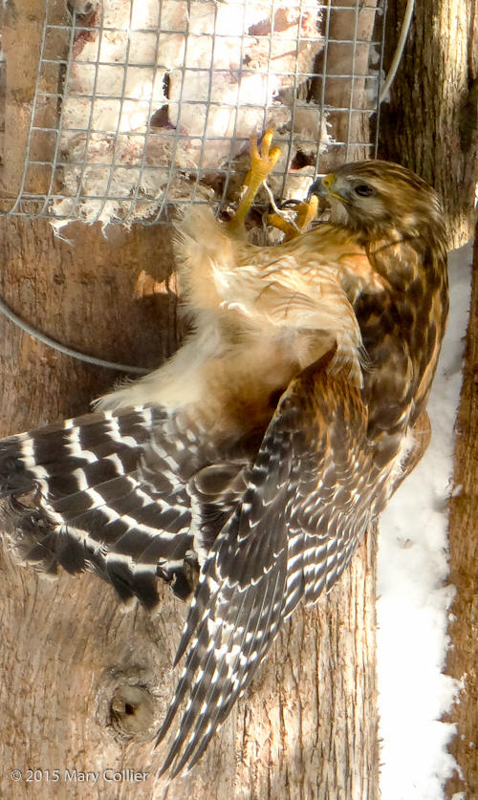 Red-shouldered Hawk at suet basket. © Mary Collier 2015